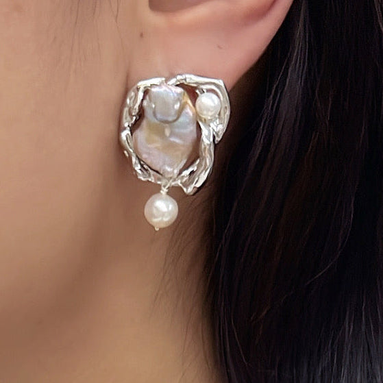 材質 : 925純銀鍍金耳針, 淡水珍珠, 合金
