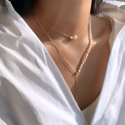[ Classic ] Y字形 可拉伸調節 多種戴法 淡水珍珠 拼接細蛇頸鏈 CHOKER C125 /
