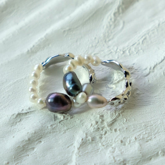 孔雀藍與銀灰色淡水珍珠 熔岩 戒指 R178-darkblue