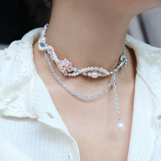 【 浪漫繁花 】淡水珍珠 白水晶 頸鏈 CHOKER C141