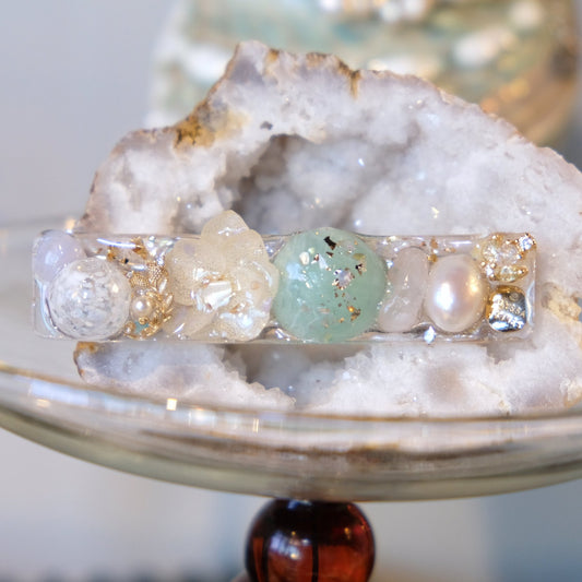 爆裂貝母 紫色繡球花 淡水珍珠 月光石 白水晶 髮夾 H128
