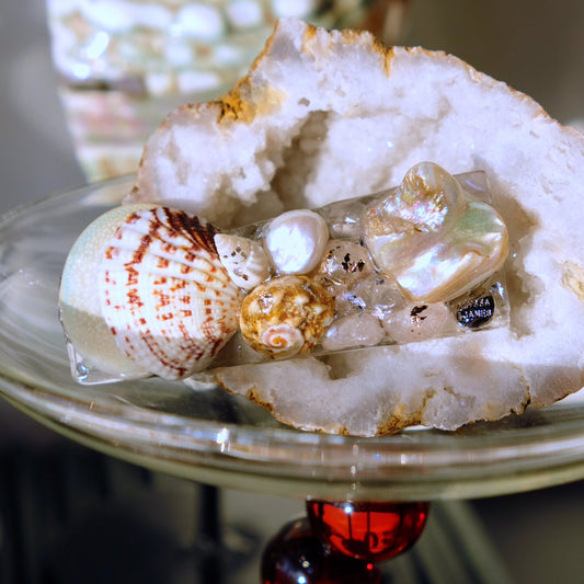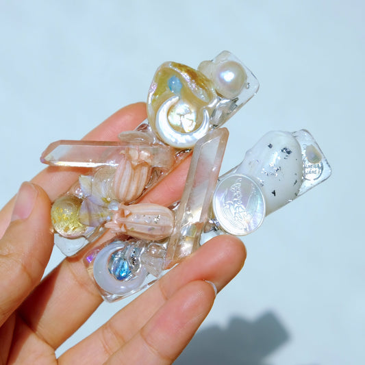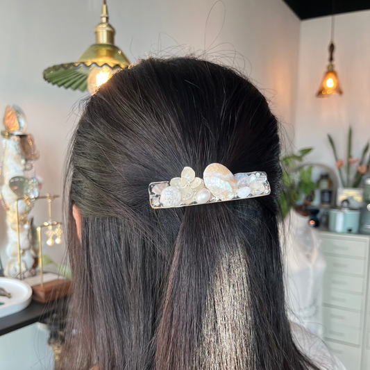 度假風 水晶 貝母 淡水珍珠 髮夾 H126