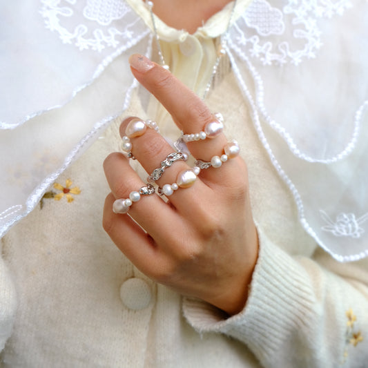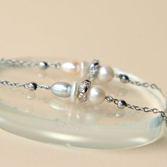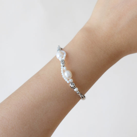 การลดราคา[ Classic ] 銀色流水 LACE編織手工穿珠 淡水珍珠 手鏈 B123