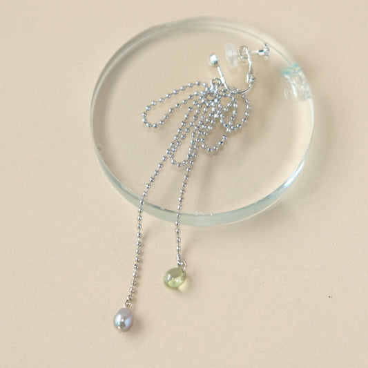 การลดราคา銀灰色淡水珍珠 綠色琉璃珠 靈動感 流蘇單邊耳夾 E358
