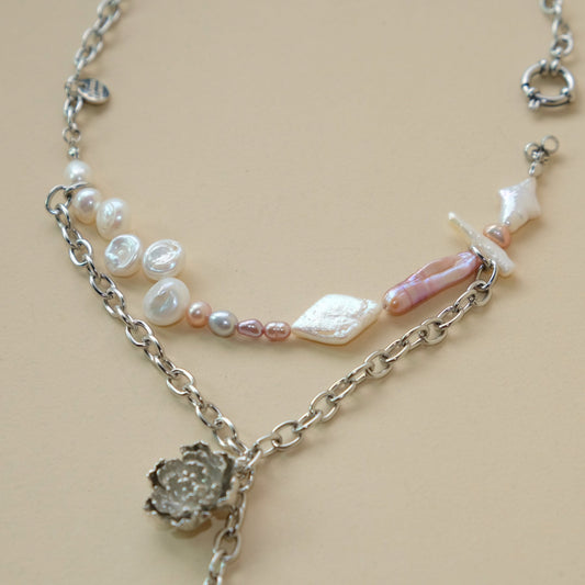 ขายหมดแล้ว【 浪漫繁花 】雙層花 淡水珍珠 頸鏈 CHOKER C138