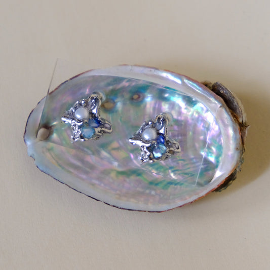 [藏在雲朵裏的白月] 淡水珍珠 藍貝母 中性 925純銀耳針耳環 E363