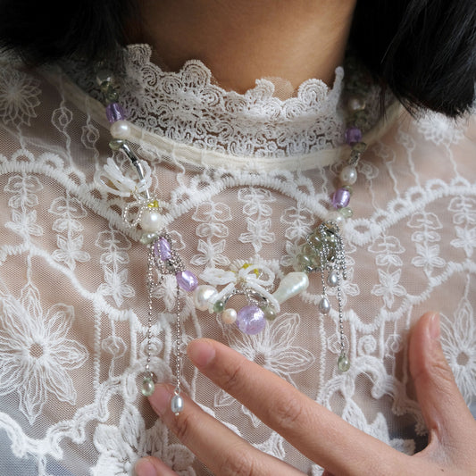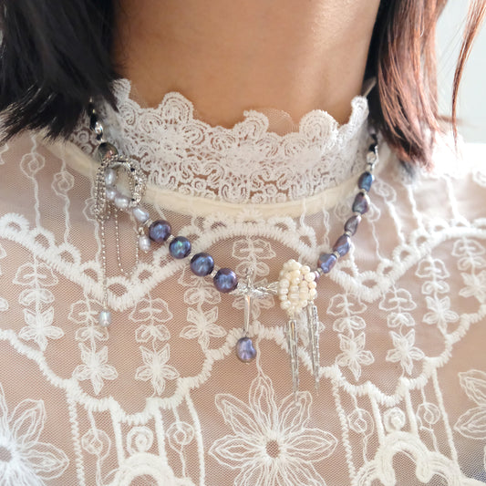 ขายหมดแล้ว【青提與薰衣草仙子】巴洛克 淡水珍珠 流蘇個性頸鏈 CHOKER C147