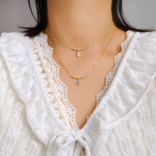 [ Elegant ] 優雅 小菱形水滴 925純銀鍍金頸鏈 鎖骨鏈 N173