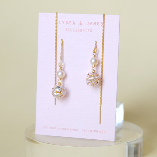 優雅淡水珍珠 鋯石水晶球 925純銀耳針耳環 E362