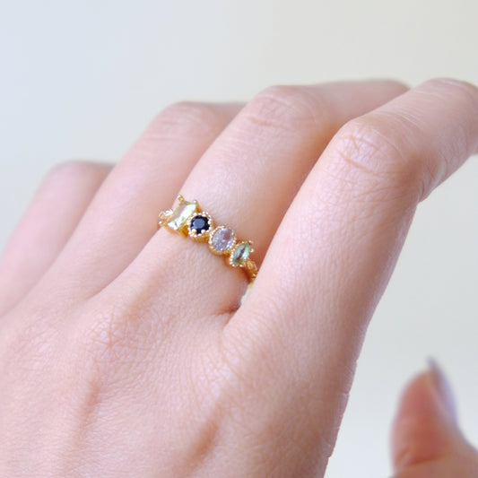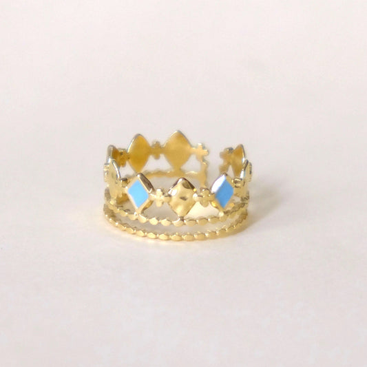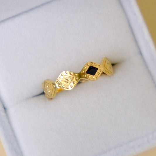法式菱形惡魔之眼 黑色藍色滴膠 金色鈦鋼戒指 R137 [ 鎮店之寶 ]