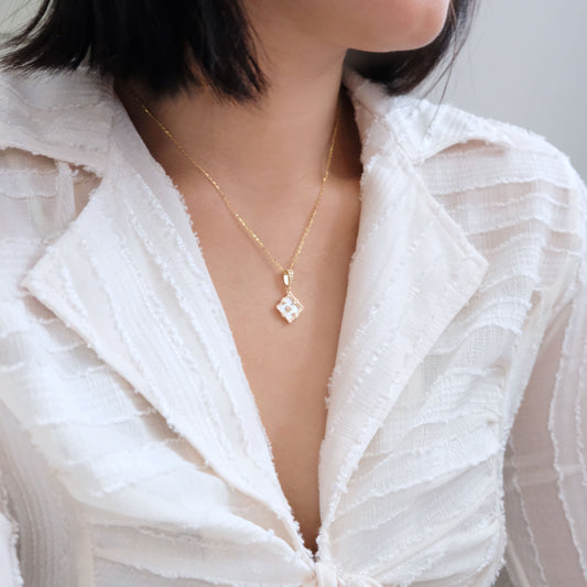 [ Classic ] 菱形花邊貝母 純銀頸鏈 N149 [ 鎮店之寶 ]