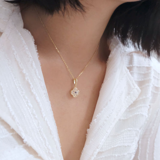 [ Classic ] [ Lucky四葉草 ] 貝母 藍色鋯石 純銀頸鏈 N148