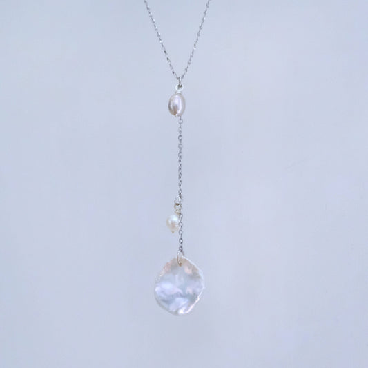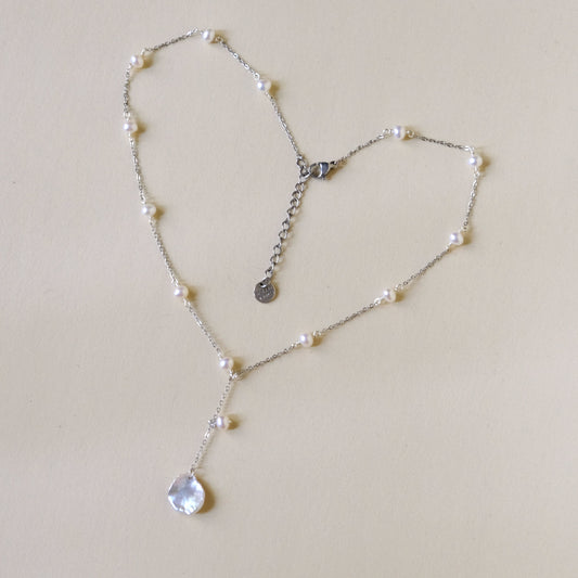 婚禮 滿天星 AA+淡水珍珠 KESHI無核珍珠 Y字型防掉色鈦鋼頸鏈 N177