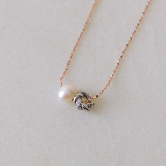 [ Classic ] [ 玫瑰金 ] [ 小銀粒與珍珠 ] 可拆式閃爍 純銀頸鏈 N156
