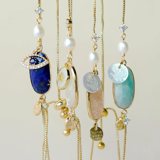 การลดราคา月亮貝母 淡水珍珠 幻彩粉紅 星空藍 香薰精油琉璃珠手鏈 KB013
