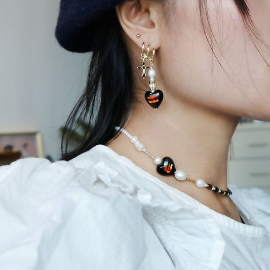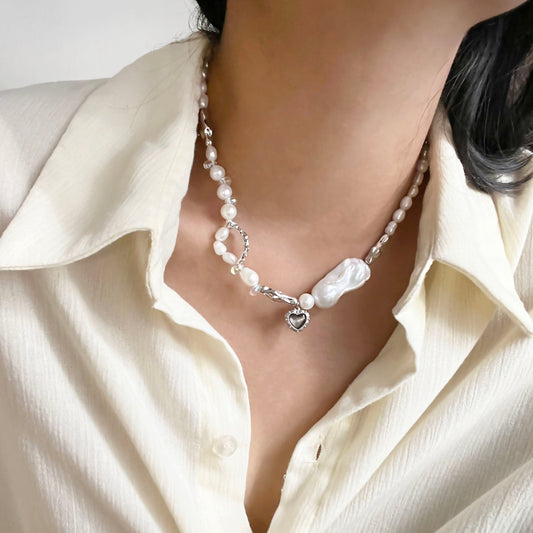 異形巴洛克珍珠 銀色熔岩 心形黑貝母 頸鏈 CHOKER C136