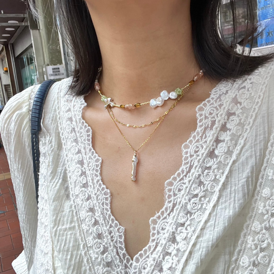 豐盛的牡丹 巴洛克淡水珍珠 Y字型 頸鏈 CHOKER C145