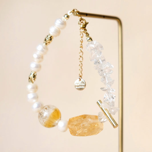 [ 旺財 ] 黃水晶 淡水珍珠 金色香薰精油琉璃珠手鏈 KB012