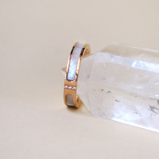 貝母 鋯石 玫瑰金色 鈦鋼戒指 R133